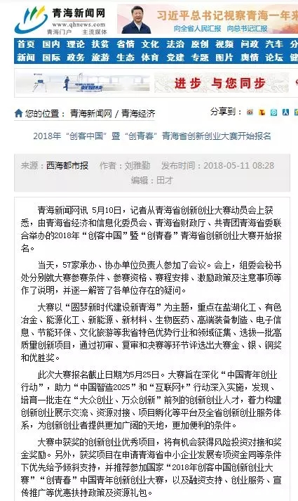 由青海省經(jīng)濟和信息化委員會、青海省財政廳和共青團青海省委聯(lián)合主辦的2018年“創(chuàng)客中國”暨“創(chuàng)青春”青海省創(chuàng)新創(chuàng)業(yè)大賽決賽經(jīng)過4個多月的精心籌備已于8月10日在青海省廣播電視臺圓滿落幕。